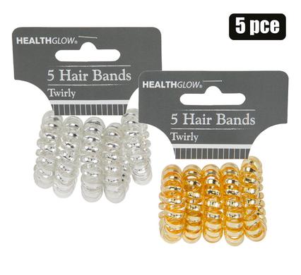 / HAIR BAND TWIRLY 5PC METALLIC