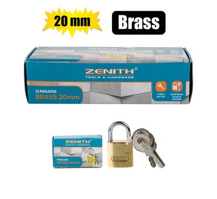 PADLOCK ZENITH BRASS 20mm BOXED