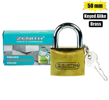 / PADLOCK ZENITH BRASS 50mm KEY-ALIKE BOX