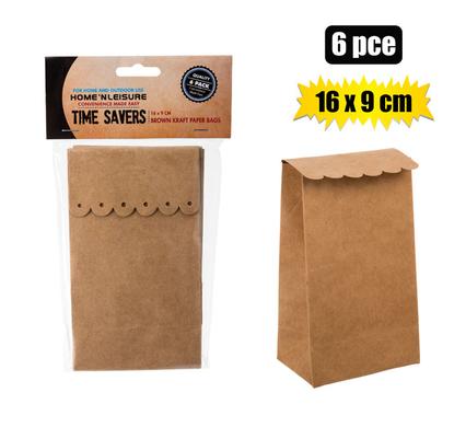 / PAPER PARTY BAGS 6PC BROWN 16x9cm