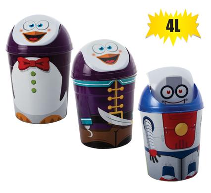 WASTEPAPER-BIN PL SWING-LID 4L KIDDIES
